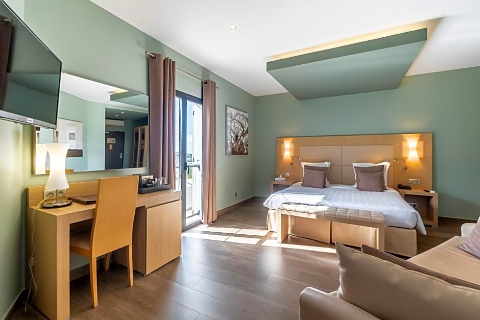 This room features a balcony with mountain views and a satellite TV. It is complete with en suite, bathrobe and slippers and a hairdryer. This room can accommodate an extra bed, upon request. A free baby cot can be accommodated in this room.
